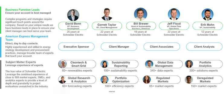 Schneider Electric appreciates the opportunity to propose solutions for American Express' data & emissions management needs. We look forward to the opportunity of partnering on your sustainability initiatives.