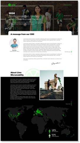 These assets will increase the visibility and accessibility of Lime's sustainability & ESG progress. A perfect way to share your great work with stakeholders, both internal & external.