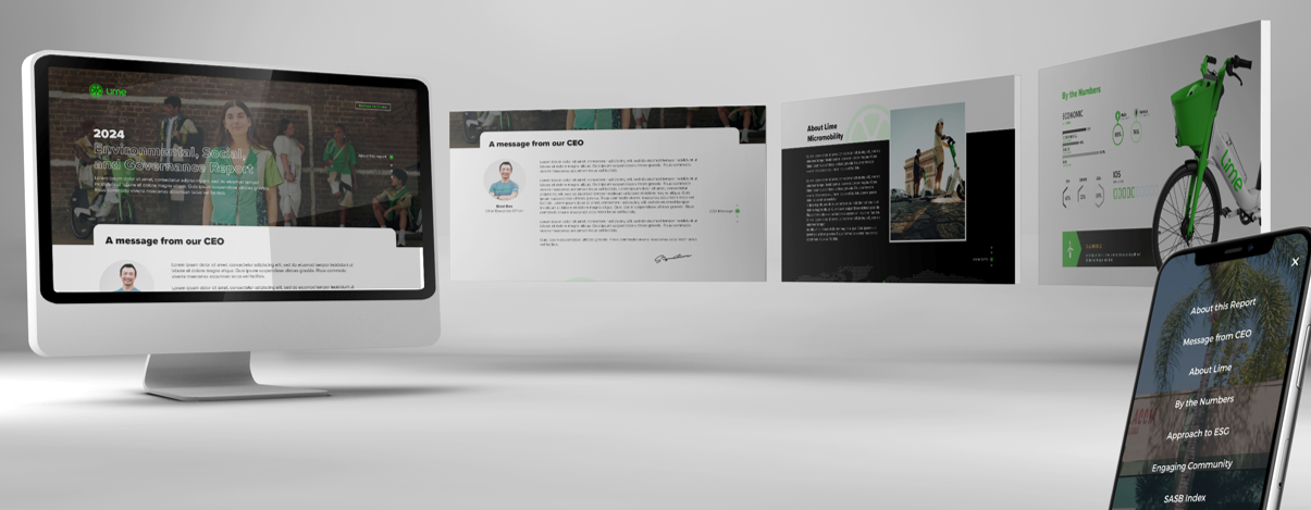 Given the lack of budget availability this year, we proposed a phased multi-year approach that will drive impact out of the gate. We'll help Lime announce it's ESG Impacts to the market by publishing an executive-level 'lite" GRI & SASB aligned report later this year. Then over the next two years, we'll enhance Lime's reporting breadth, format, and accessibility to drive awareness globally.
